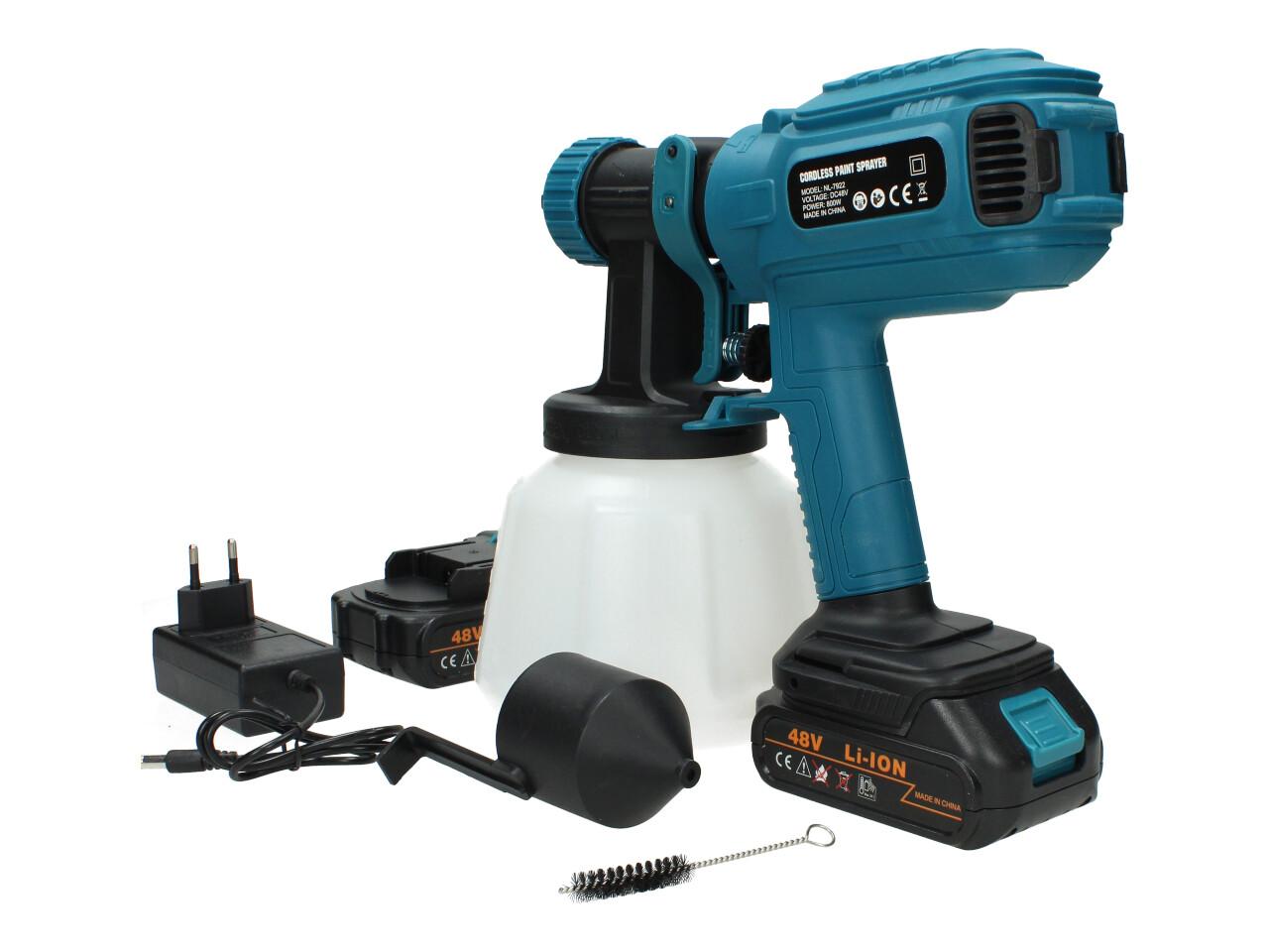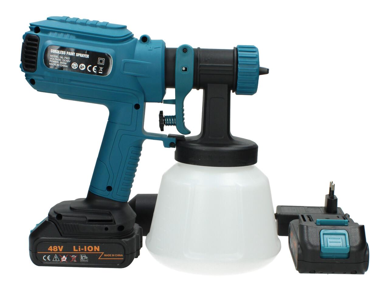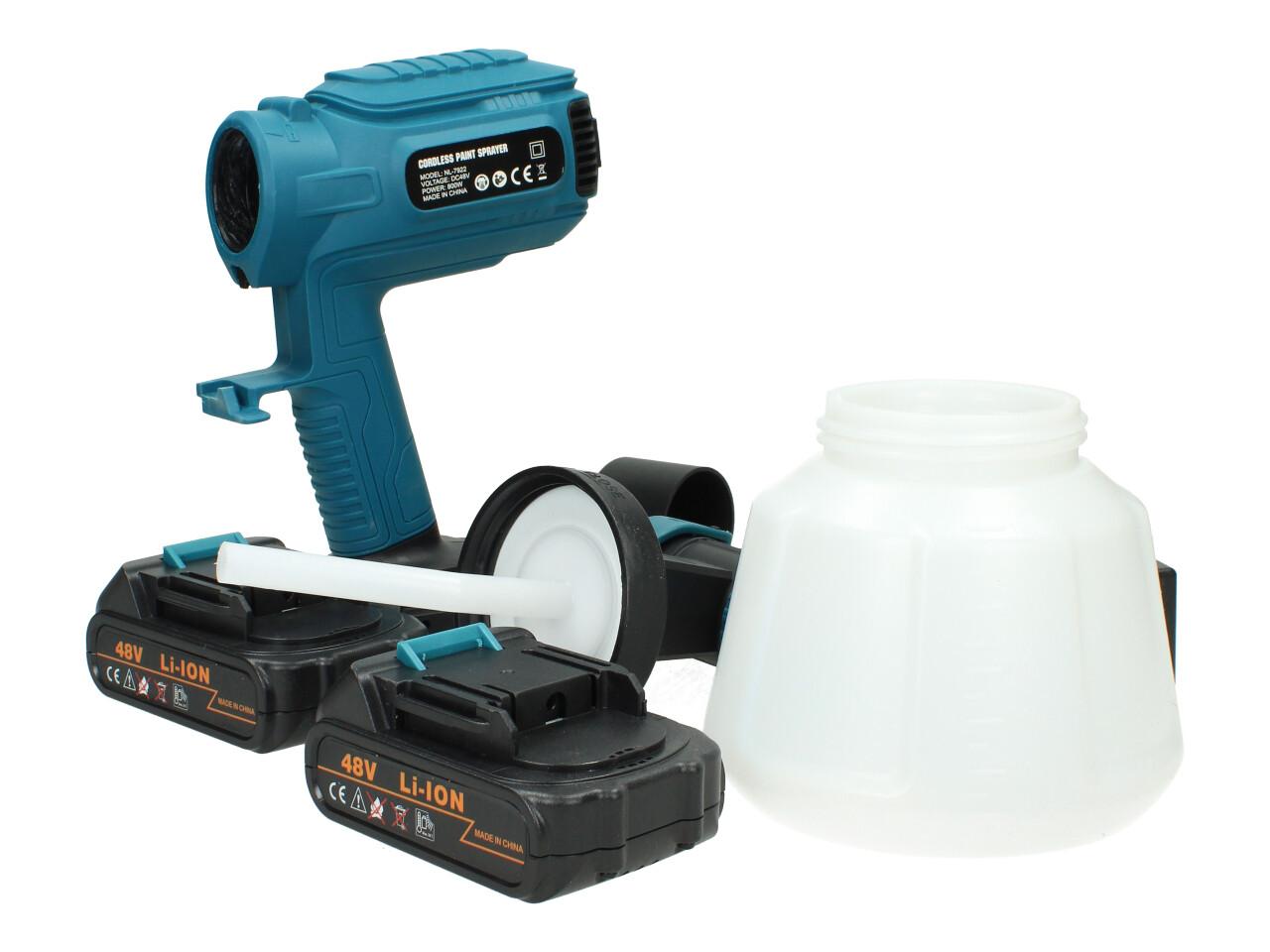 Aku stříkací pistole 48V 1000ml HVLP včetně 2ks AKU specifikace:
