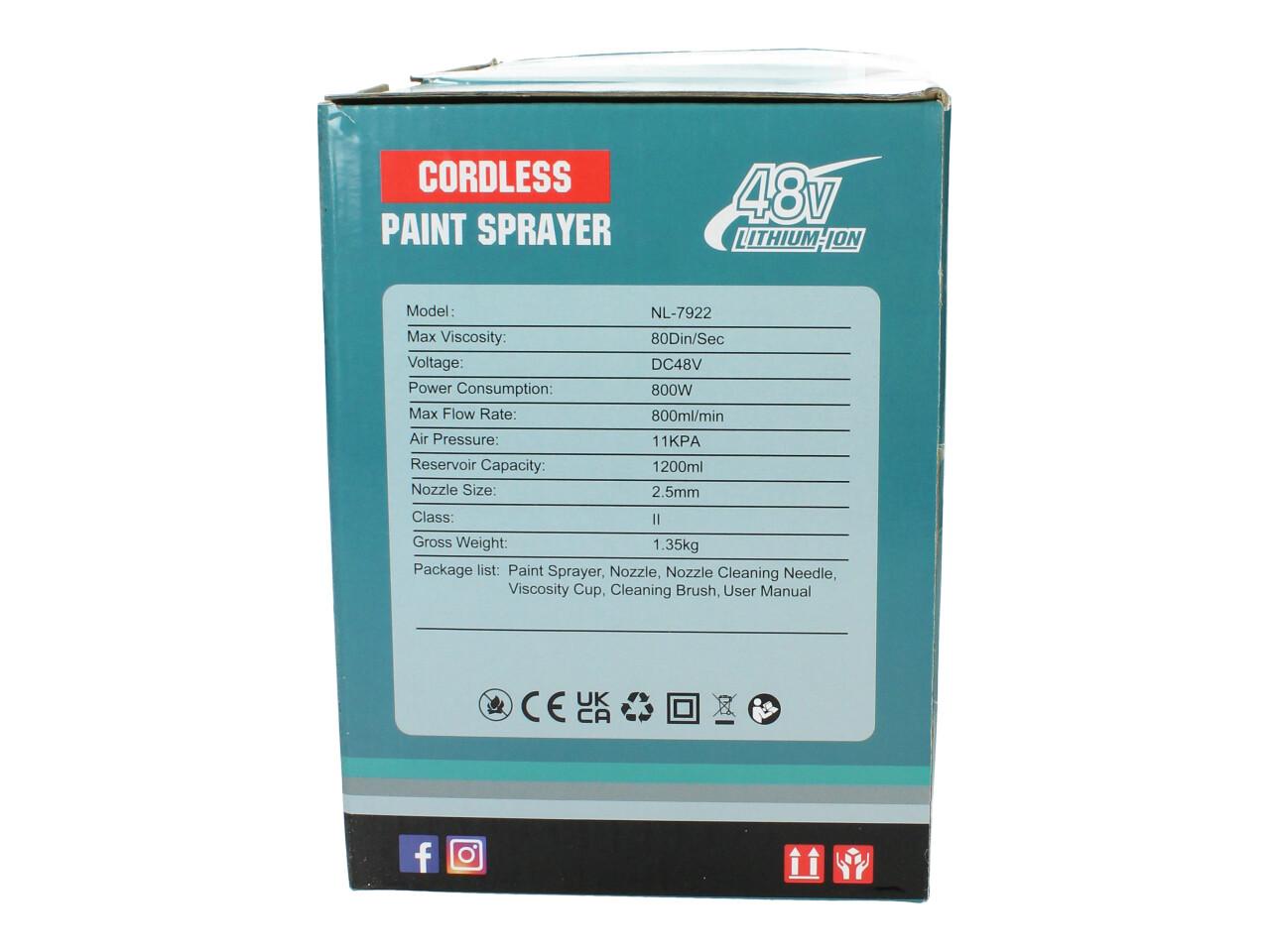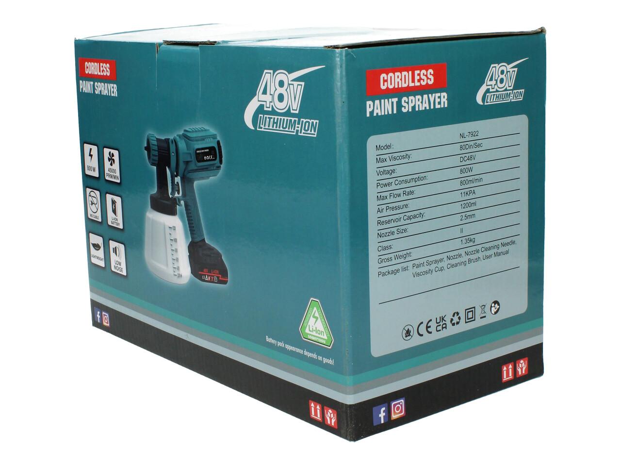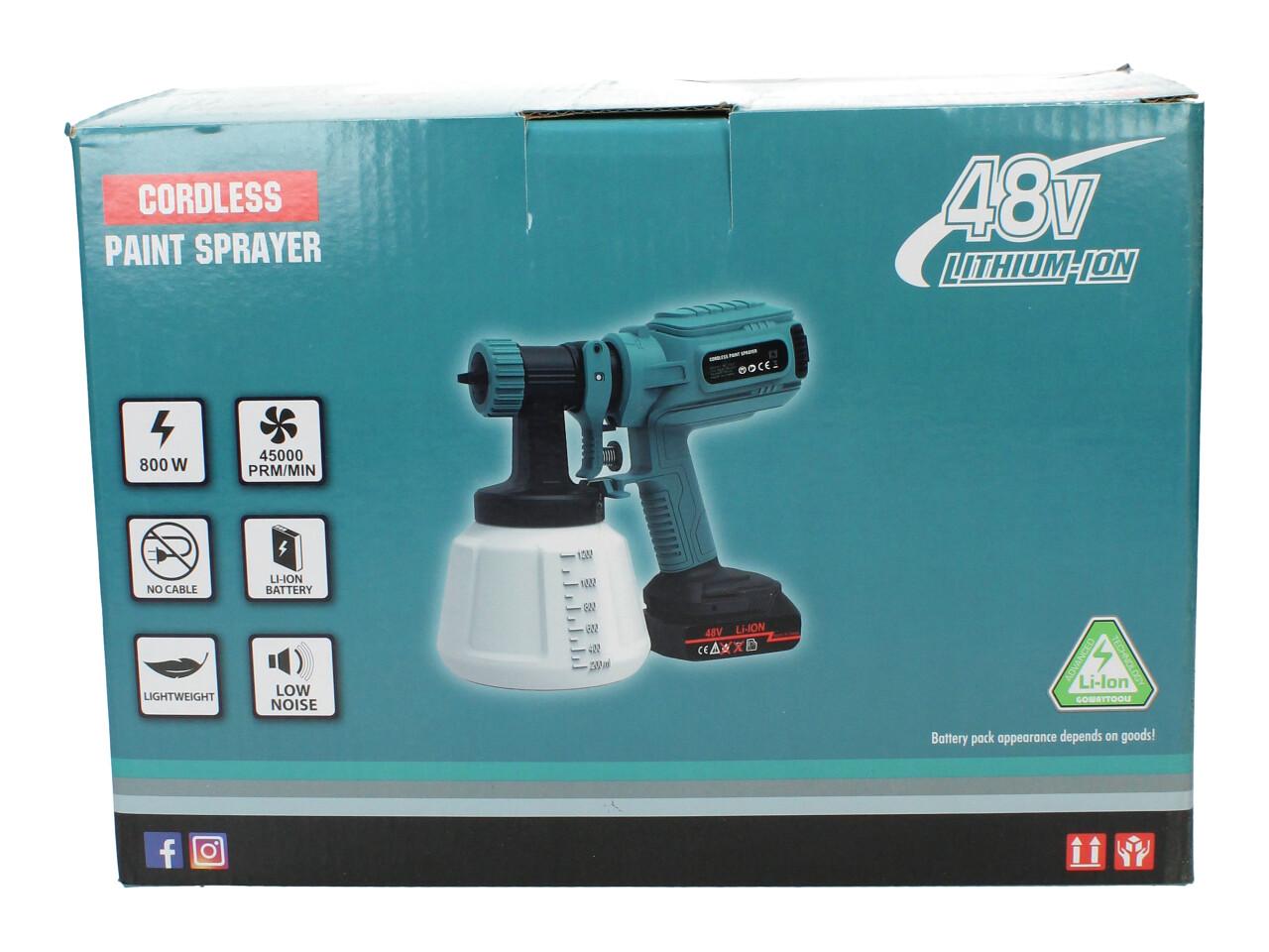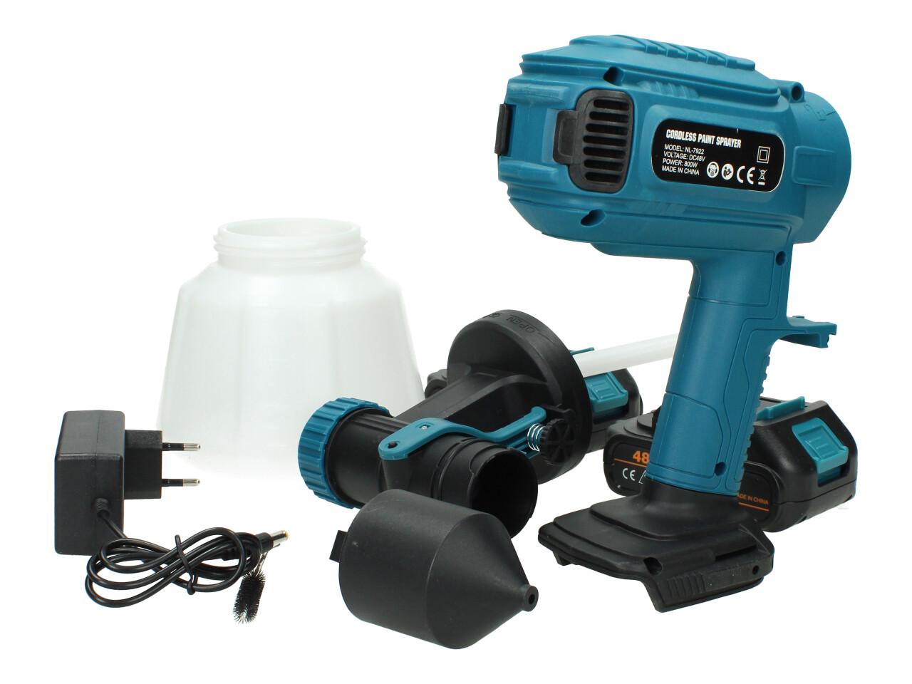 Aku stříkací pistole 48V 1000ml HVLP včetně 2ks AKU specifikace: