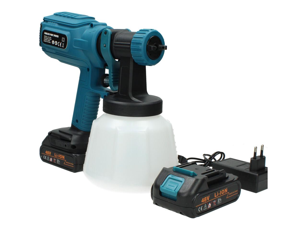 Aku stříkací pistole 48V 1000ml HVLP včetně 2ks AKU