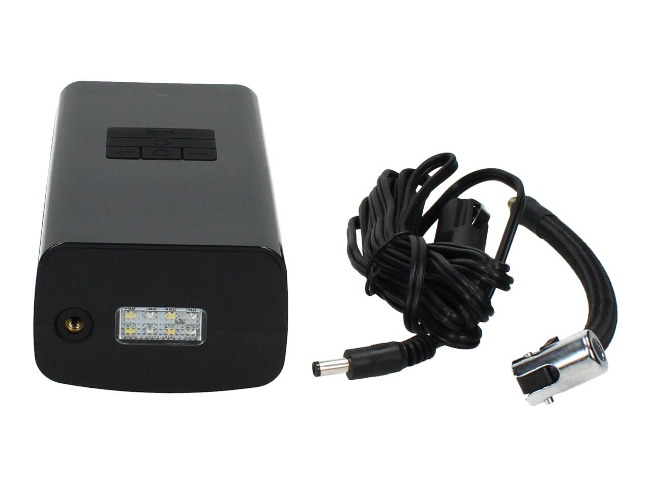 Baterie s kapacitou 2000mAh a maximálním tlakem 150 PSI, tento tlak postačuje na bezproblémové nafouknutí všech kol automobilu.