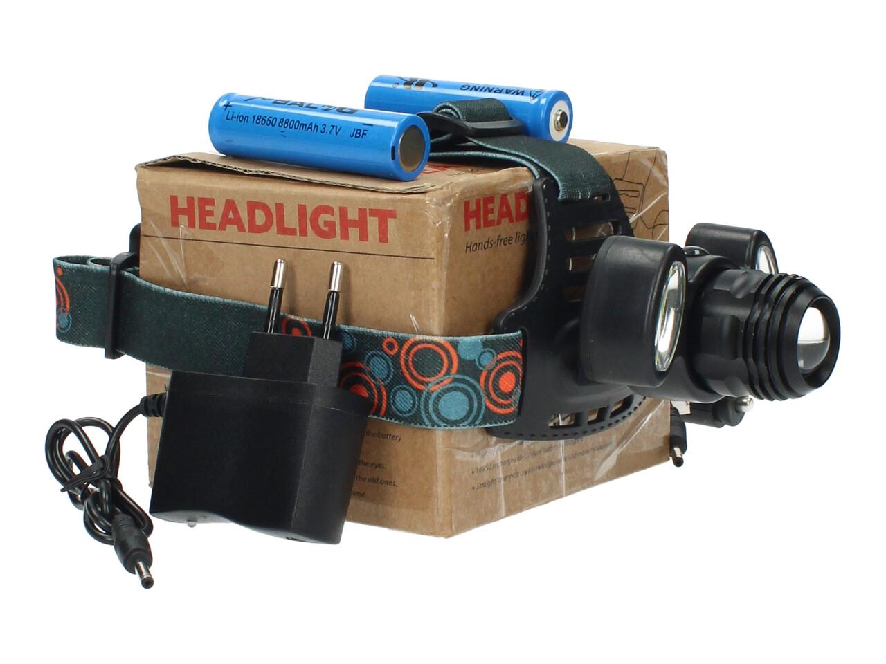 Čelovka se třemi LED světlomety, ideální jako náhradní nebo pracovní světlo. Součástí balení jsou dvě nabíjecí baterie, nabíječka do sítě a nabíječka do auta. Díky nastavitelným popruhům pohodlně sedí na hlavě a poskytuje využitelné světlo.