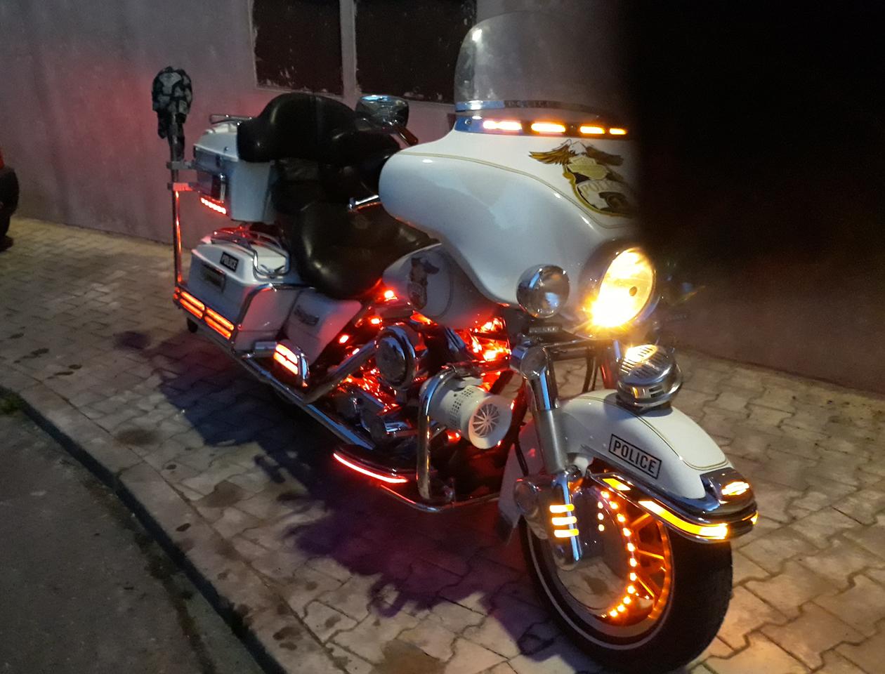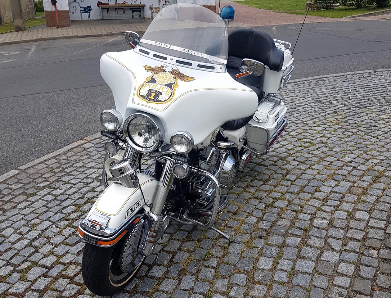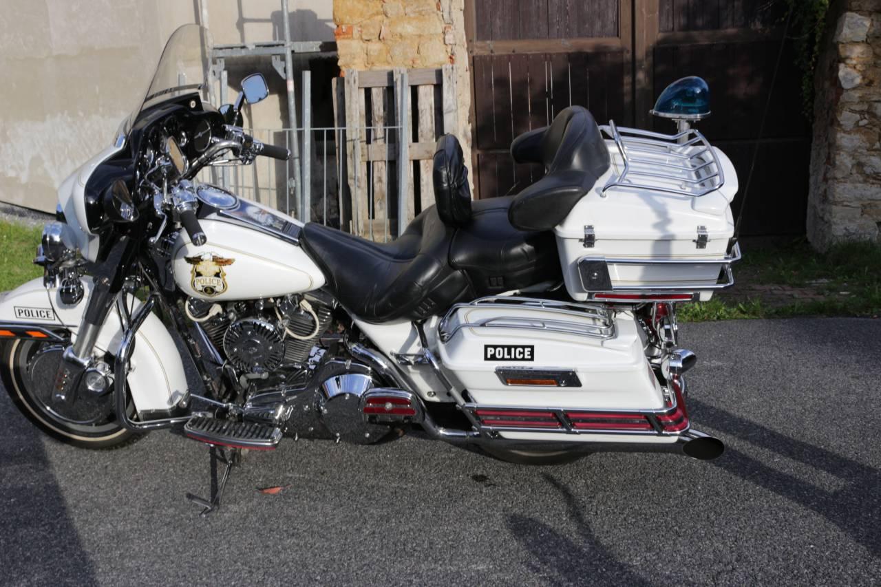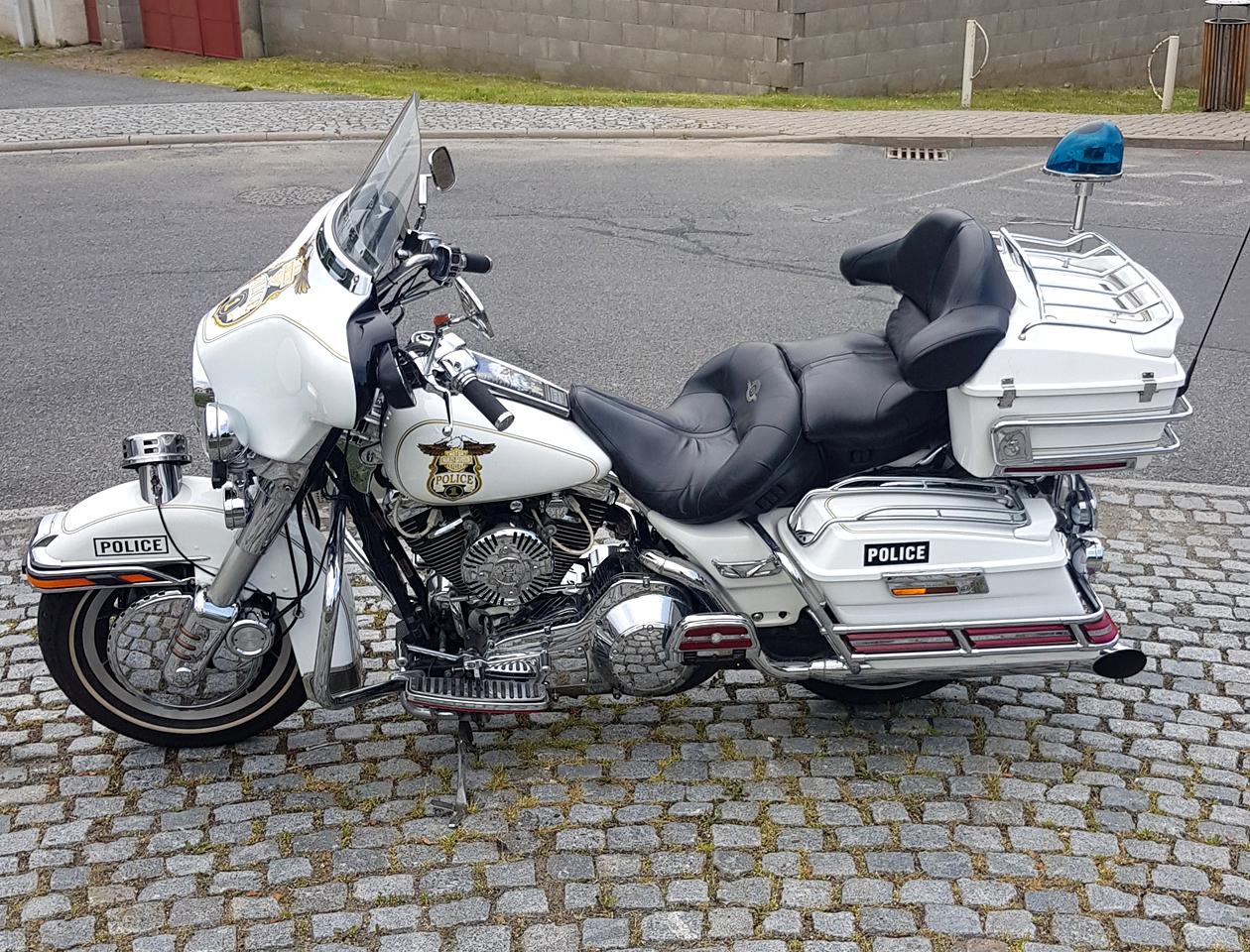 Legendární policejní Harley-Davidson z roku 1995, původně ve vlastnictví Františka Kučery, zakladatele českých Blue Knights. Unikátní kus s historií, laděnými výfuky, airbrushem, majáky a kompletní policejní výbavou. Plně funkční, po STK, připravený na silnici.