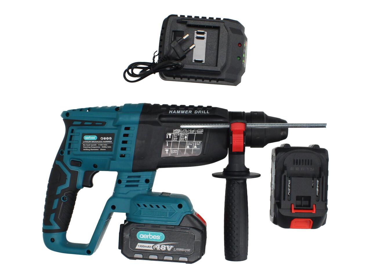 Aku bourací kladivo Aerbes AB-GJ07 je užitečný nástroj ejen pro domácí použití, ale i pro práci tam, kde není dostupný elektrický proud. Jeho hlavní výhodou je, že zastoupí i aku vrtačku s příklepem a mobilita – můžete s ním pracovat kdekoliv, bez nutnosti připojení do zásuvky. Součástí balení jsou 2 výkonné akumulátory 45V / 1300 mAh, nabíječka a odolný plastový přenosný kufr, takže máte vše potřebné vždy po ruce.