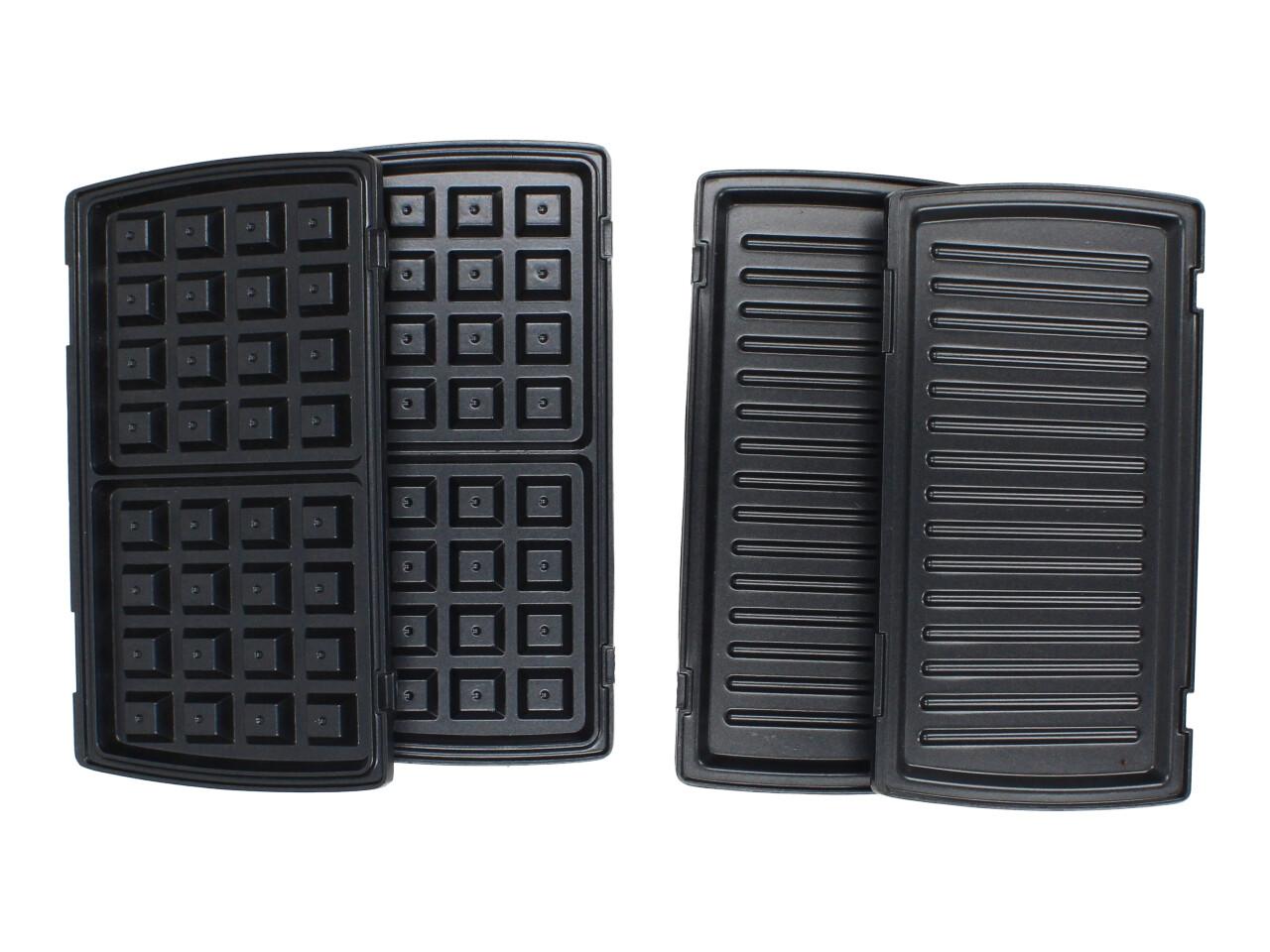Sada náhradních nepoužitých plotýnek do toustovače. Praktické řešení, pokud potřebujete vyměnit staré nebo poškozené plotny. Vhodné pro víceúčelové toustovače s výměnnými deskami.