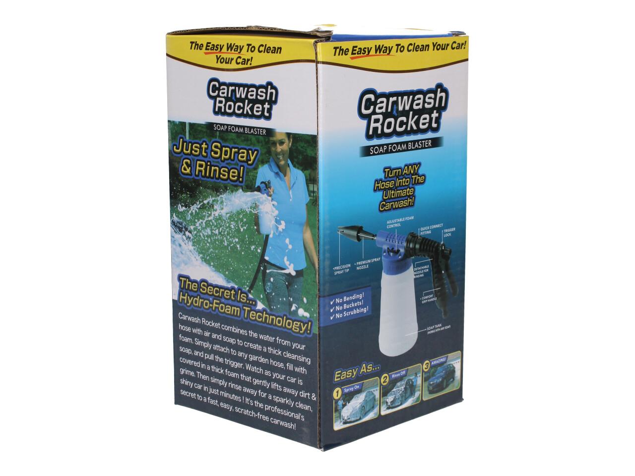 CarWash Rocket (napěňovač / foam blaster) promění směs auta-šamponu, vody a vzduchu v hustou, mazlavou pěnu. Tato pěna pokryje celý povrch vozidla, působí jako mazivo, uvolní špínu a nečistoty, které poté lze snadno opláchnout bez agresivního drhnutí. Stačí připojit k zahradní hadici nebo kompatibilnímu příslušenství, nastavit pěnový režim a stříkat – vhodné pro auta, motorky, kola i zahradní náčiní.
