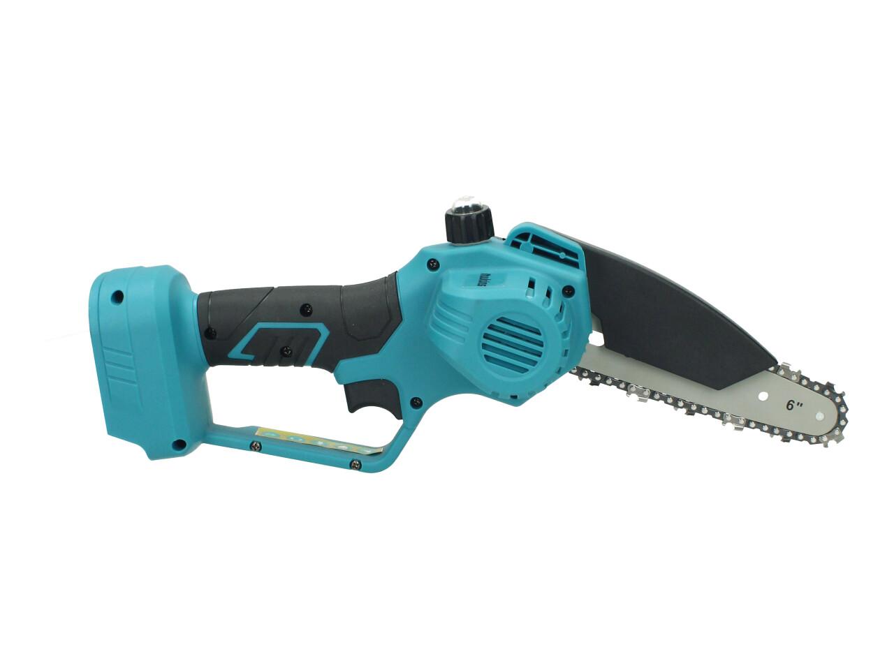 Tato verze je dodávána bez baterie a bez nabíječky – je ideální jako náhradní tělo pily, nebo pokud už baterie a nabíječku z kompatibilní sady doma máš. Pila je osazena lištu 6" a řetězem, takže je připravená k použití po doplnění kompatibilního akumulátoru. Ergonomická rukojeť zajišťuje pevný úchop, rychlost řezu lze regulovat stiskem spínače.