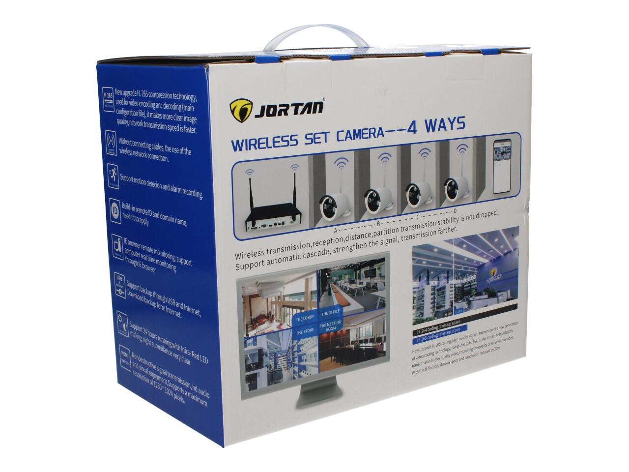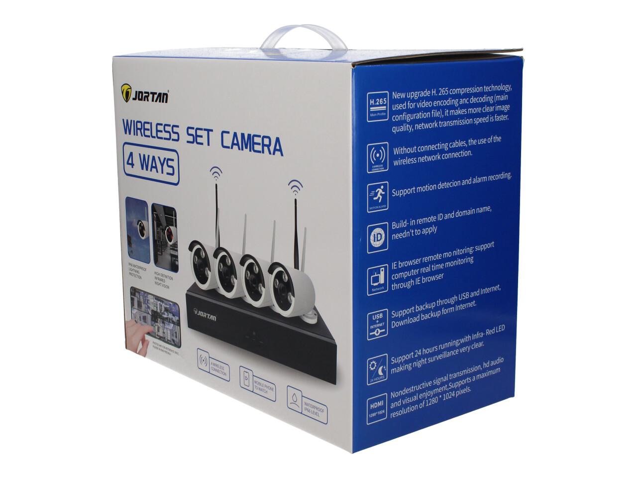 Bezdrátový kamerový set JORTAN je kompletní řešení pro zabezpečení domu, kanceláře, prodejny, chaty nebo garáže – bez složitého tahání kabelů. Set obsahuje 4× 1024P HD WiFi IP kameru a 4kanálový Wireless NVR rekordér (N6104), ve kterém je navíc zabudovaný WiFi router pro stabilní bezdrátové propojení kamer se záznamem.