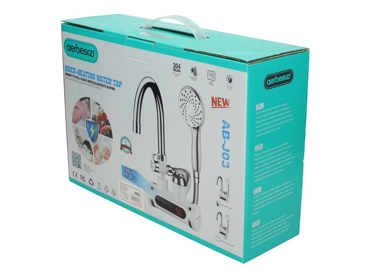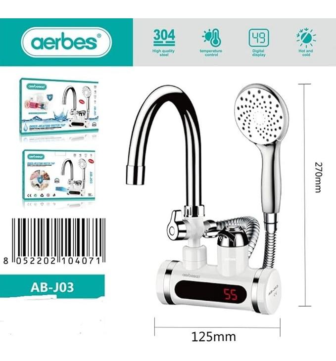 Aerbes AB-J03 je kompaktní vodovodní baterie s okamžitým ohřevem vody, ideální do míst, kde není praktické instalovat klasický bojler. Po zapnutí dodává teplou vodu téměř ihned a umožní pohodlné mytí i v malých prostorách. Díky průtokovému ohřevu se voda neskladuje v nádržce, což je hygieničtější – vždy ohříváte čerstvou vodu.