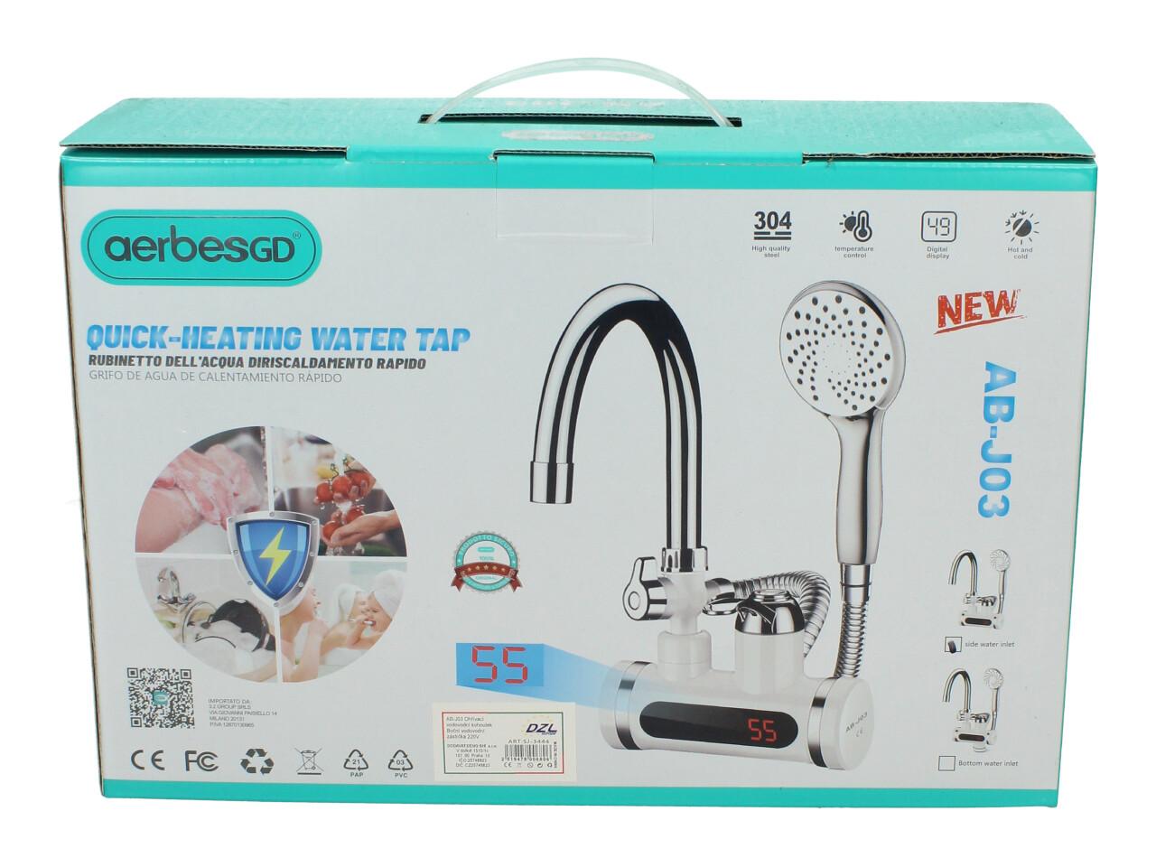 Aerbes AB-J03 – průtoková vodovodní baterie s rychlým ohřevem + sprcha (spodní připojení)