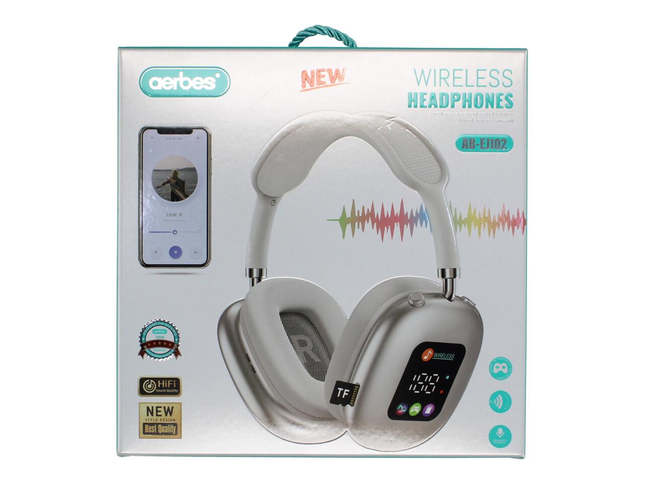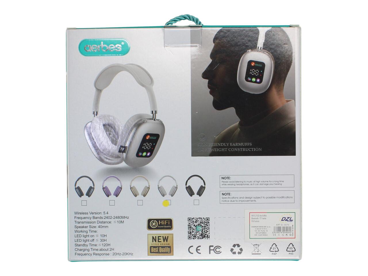 Sluchátka AERBES AB-EJ102 – bezdrátová BT 5.4 Hi-Fi sluchátka s pouzdrem (LED/displej, microSD)