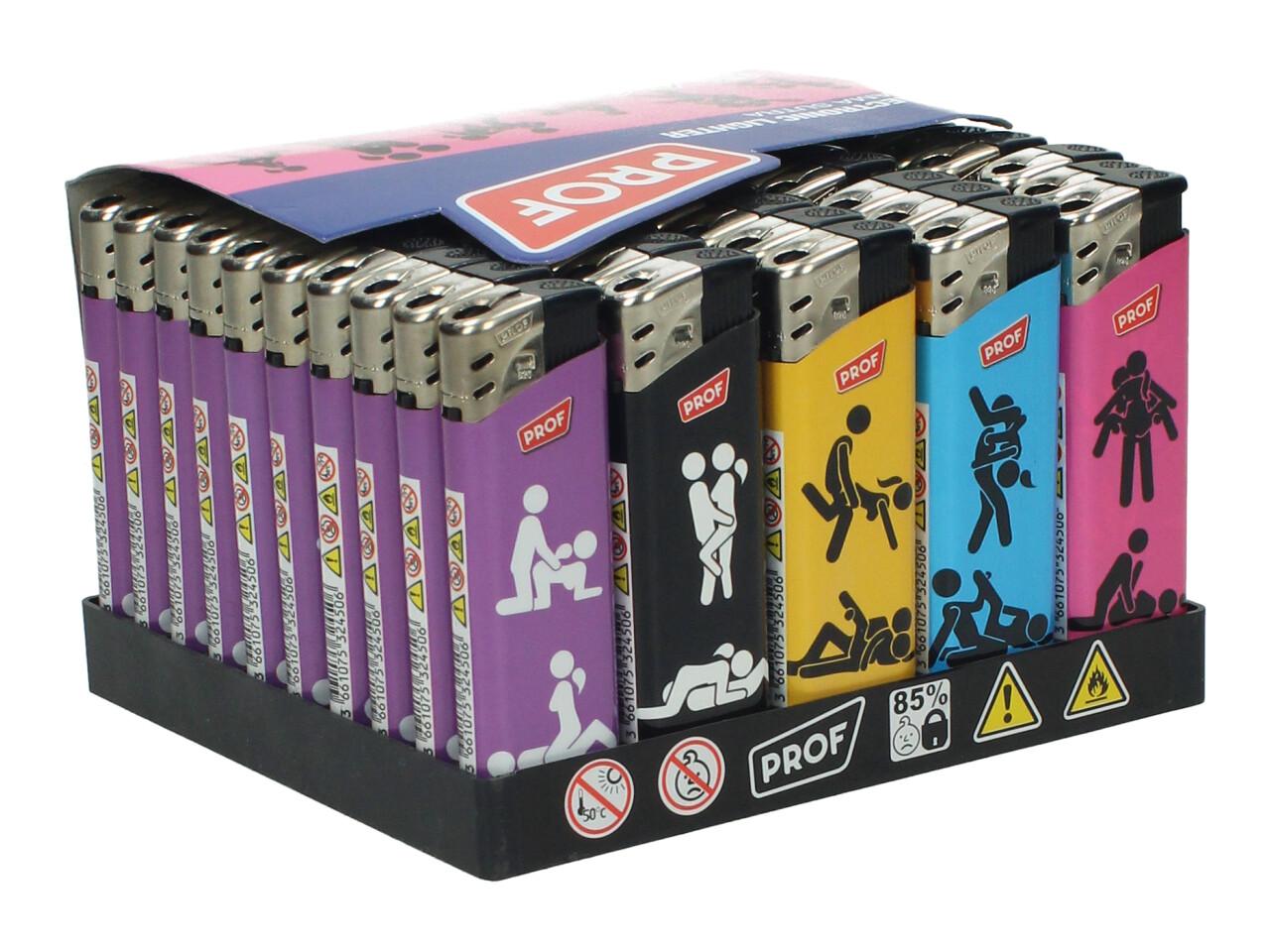 Sada zapalovačů s motivy sexuálních poloh (50 ks) je zábavná kolekce pro dospělé, kterou zaručeně překvapíte partnera, kamaráda nebo kolegu. Zapalovače mají výrazný a atraktivní potisk, který na sebe upoutá pozornost. V balení najdete 5 různých motivů a každý zapalovač má oboustranný potisk (stejný motiv z obou stran).