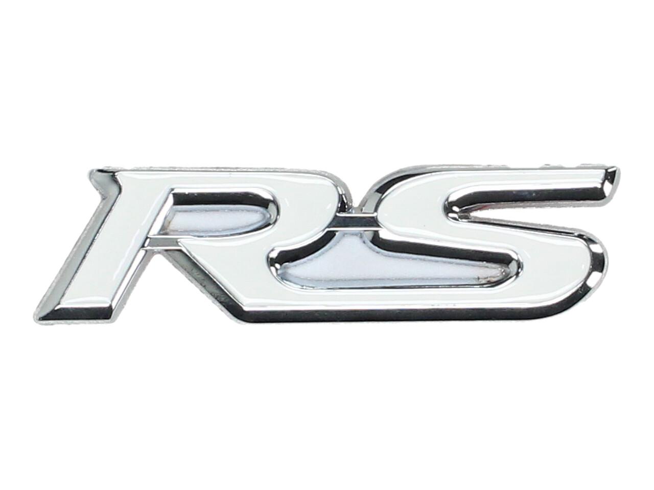 Kovová samolepka RS – bílá (9 × 2,5 cm)