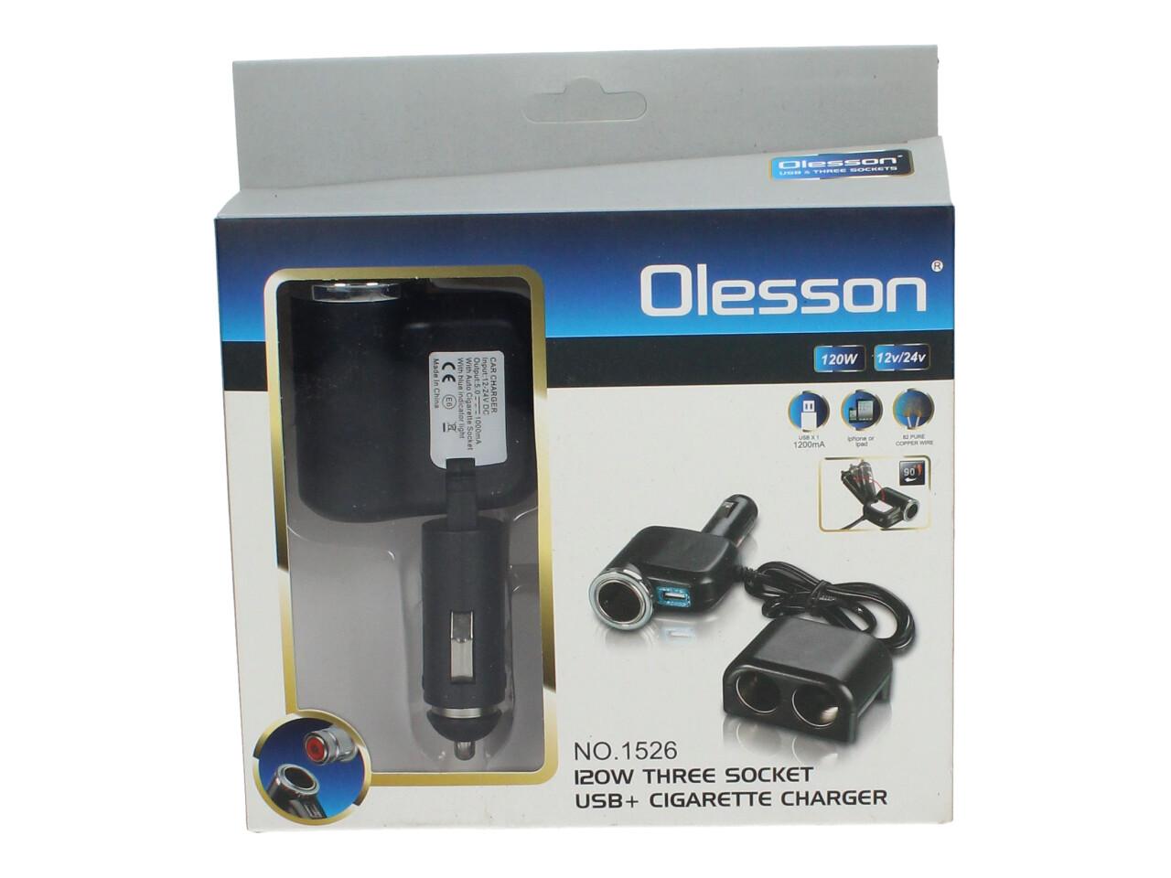Rozdvojka do autozapalovače Olesson 120W 12V/24V s USB