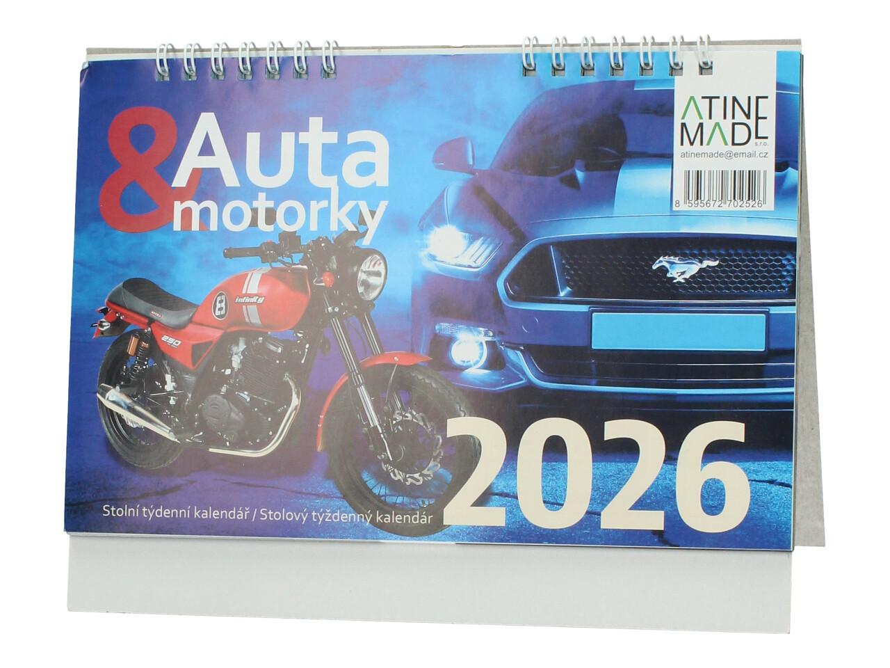 Stolní týdenní kalendář Auta & motorky 2026